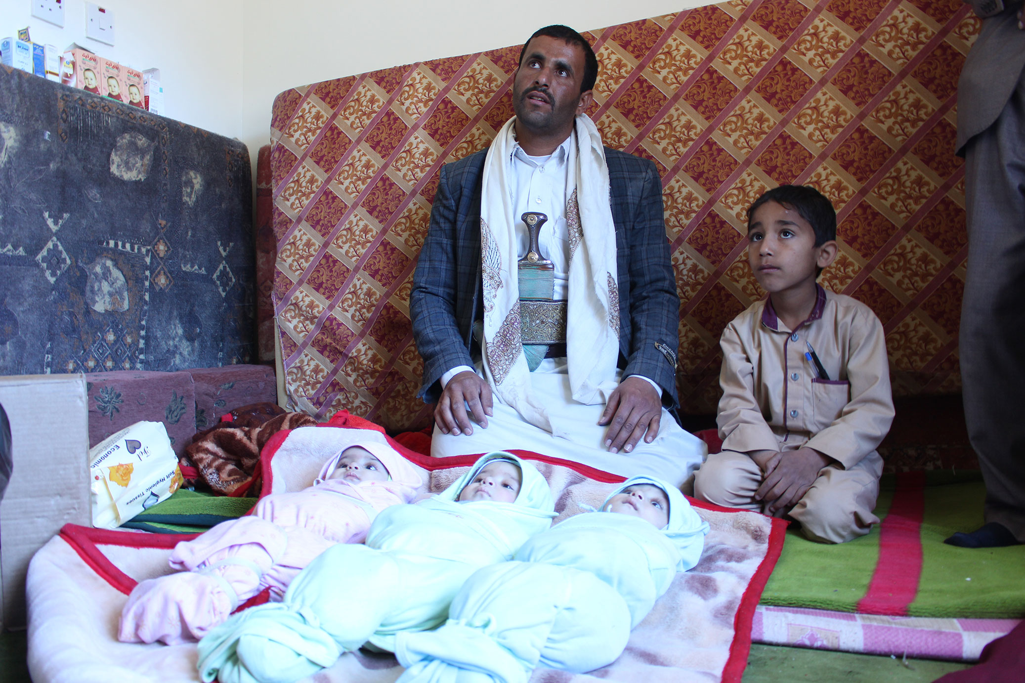 Zaid once lived in Hajjah with his wife and two children. The family had to relocate to Jihana for safety when the conflict arose. Zaid took with him his pregnant wife, who didn’t expect would have triplets. Unfortunately, Zaid’s wife suffered too many complications at childbirth leaving behind Zaid with the newly born triplets and the two children.